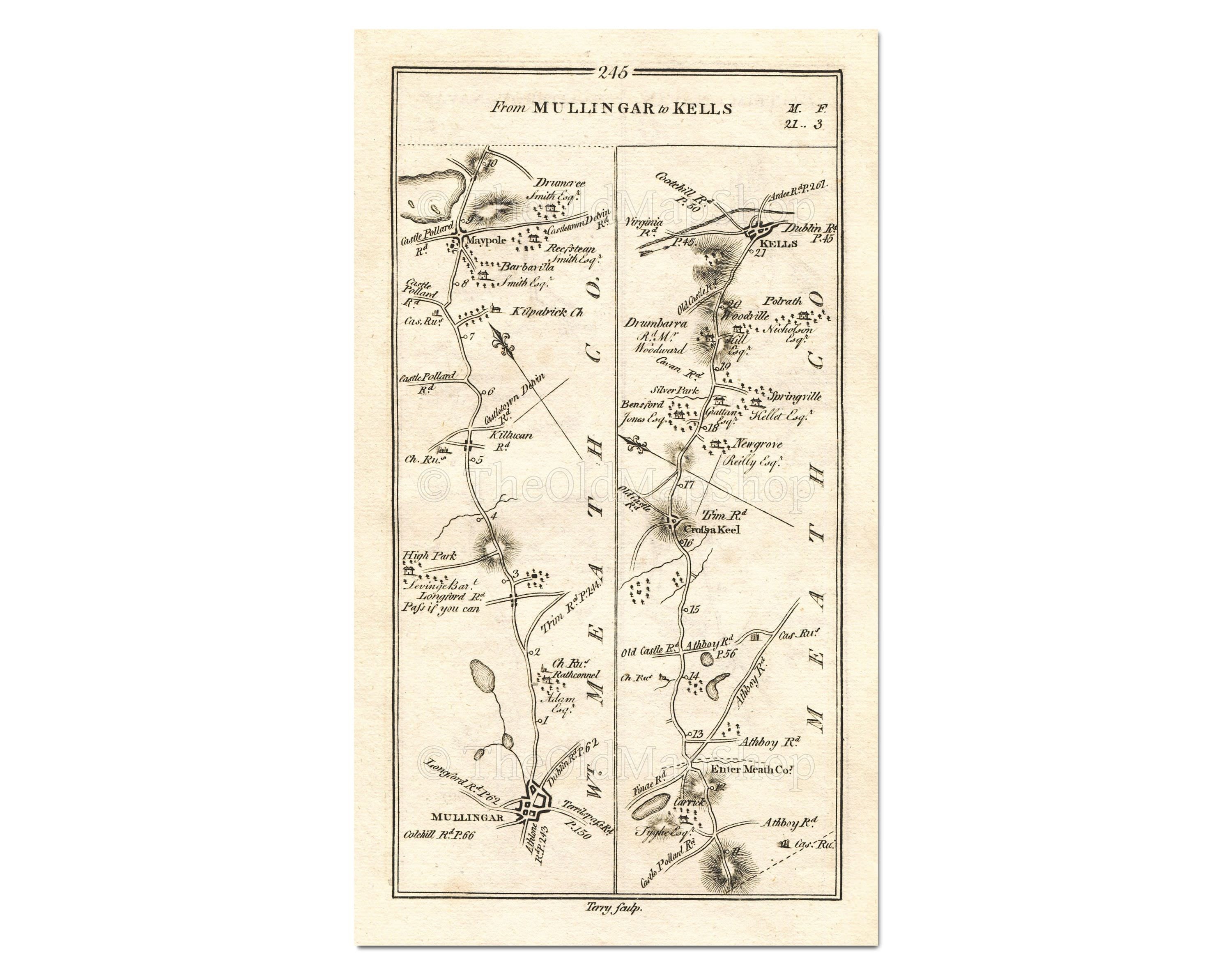 Antique Ireland Road Map Mullingar Westmeath Collinstown Etsy New Zealand